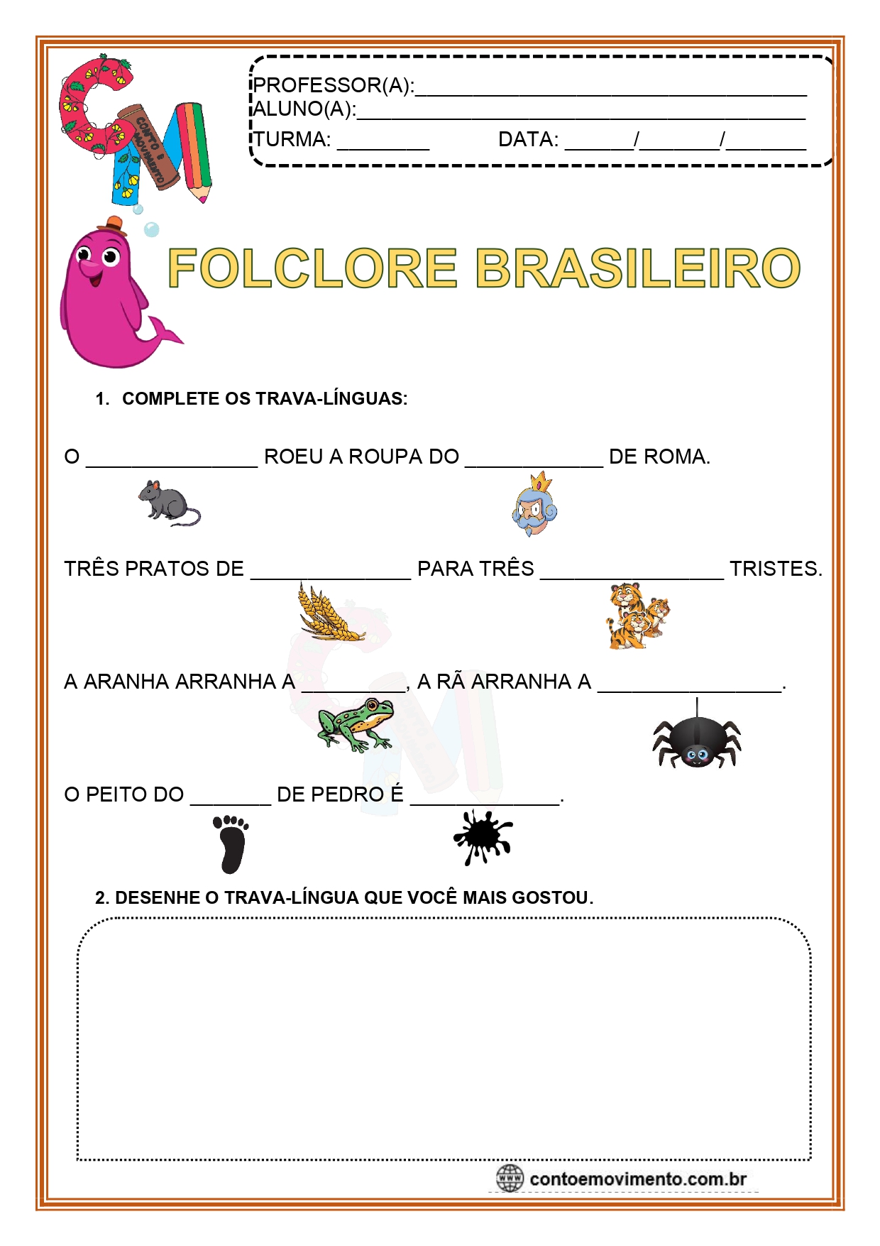 ✂️ Sugestão: montar um “Livro da Turma” com os trava-línguas preferidos, valorizando ainda mais essa data tão especial do Dia do Folclore brasileiro.