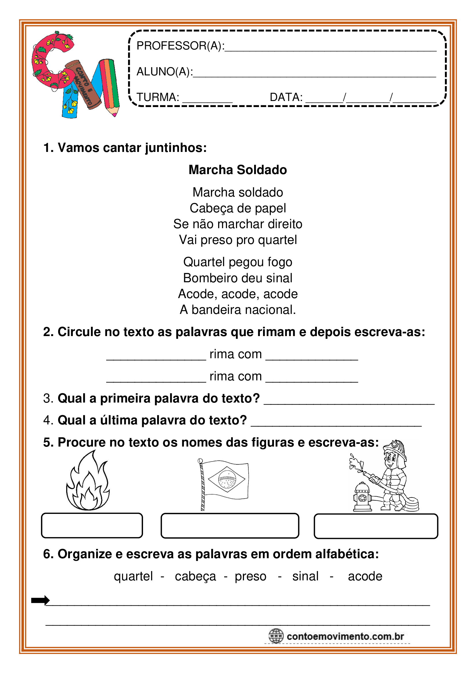 - Propor que circulem palavras que rimam (soldado/quartel, papel/chapéu).