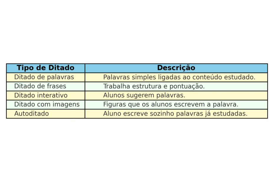 Para que a prática seja dinâmica, o professor pode variar o formato dos ditados: