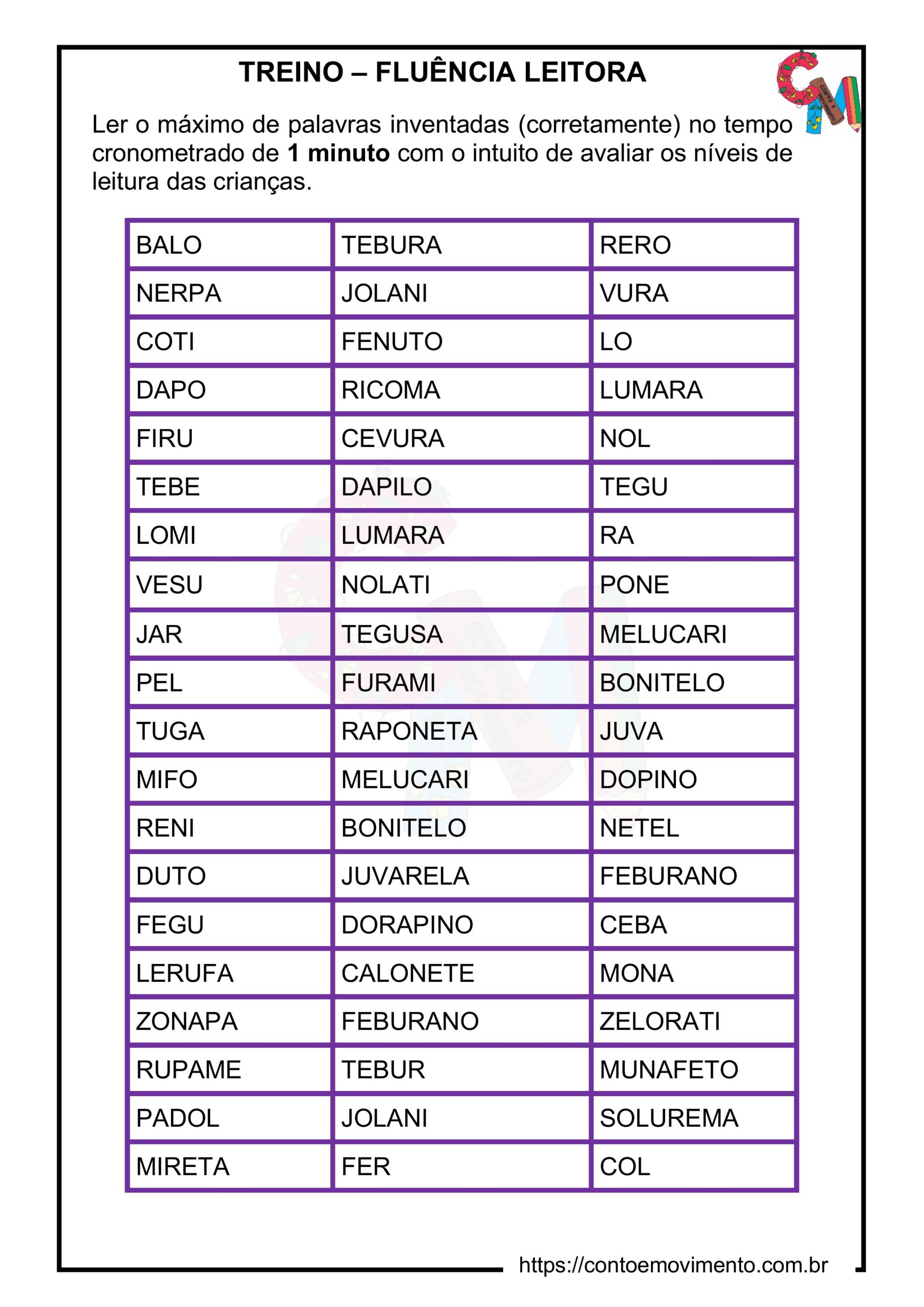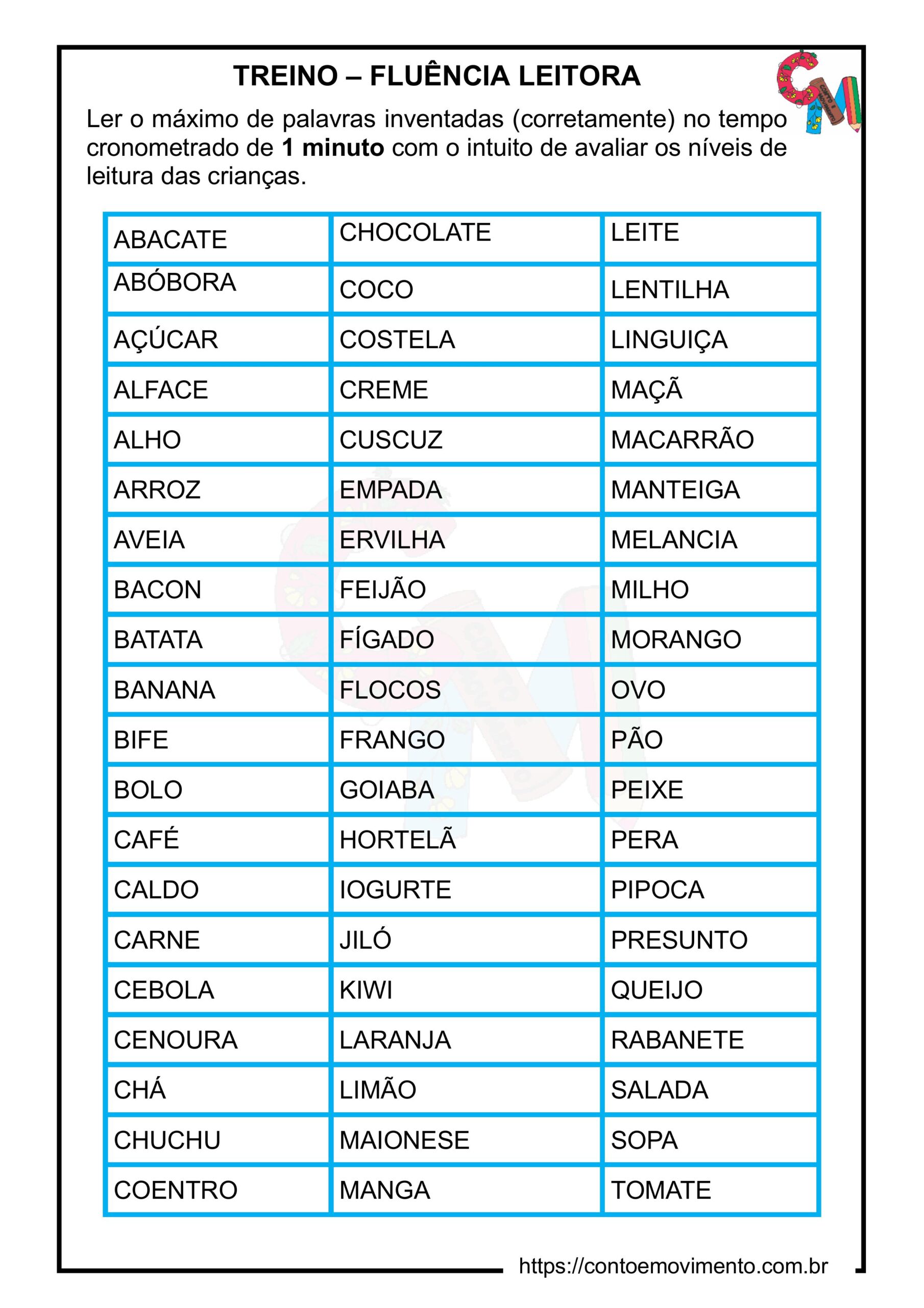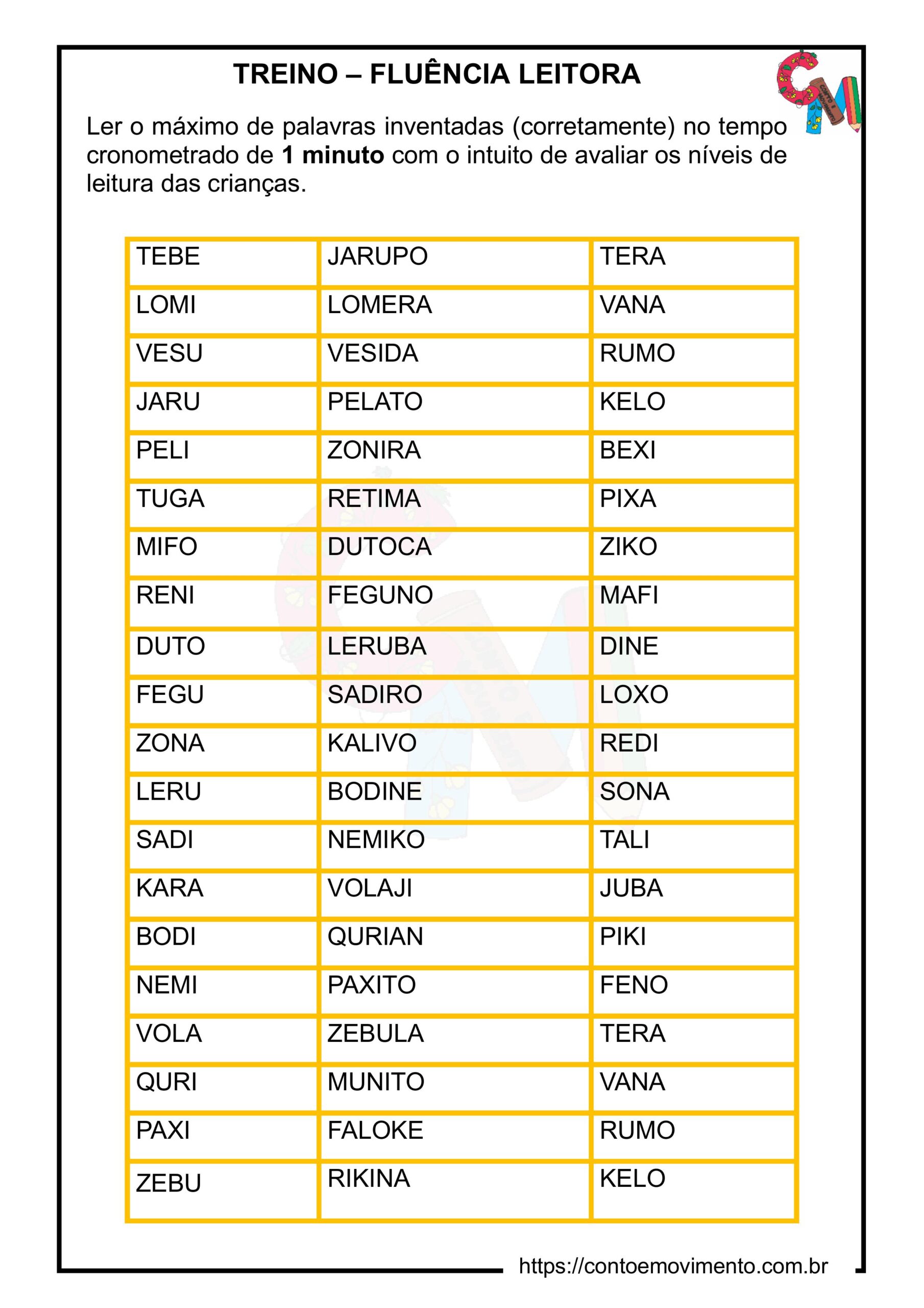 Se preferir o arquivo em PDF, basta clicar aqui: TREINO FLUENCIA LEITORA EM PDF.