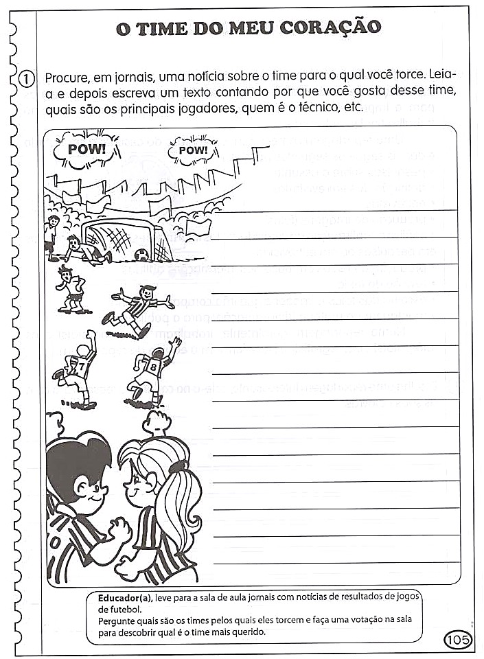Aqui, o texto jornalístico se mistura com o gosto pessoal do aluno. A proposta incentiva a escrita sobre times de futebol, jogadores e preferências esportivas, promovendo uma escrita afetiva e contextualizada.