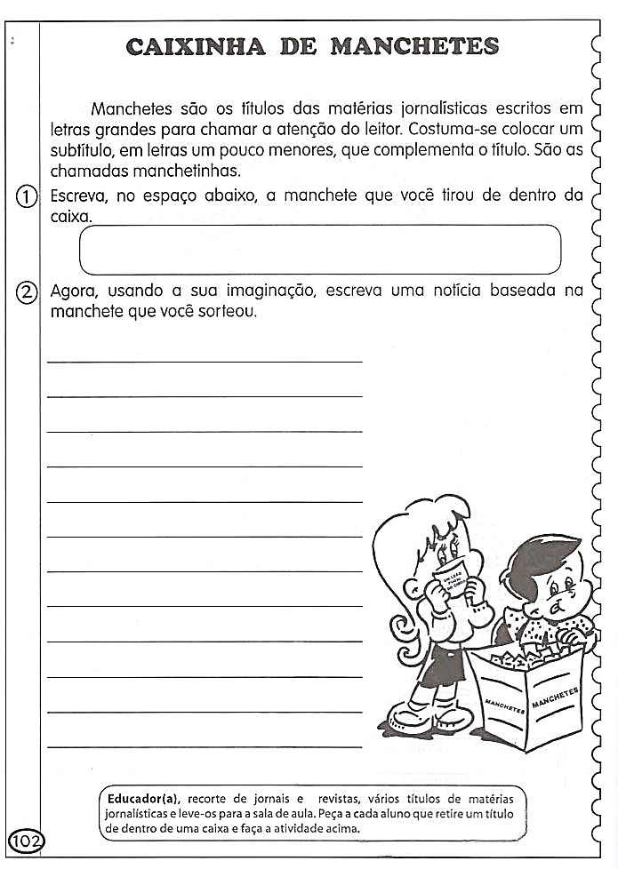 Além disso, as fichas “Escolhendo Notícias” e “Comentando a Notícia” estimulam a leitura crítica dos meios de comunicação.