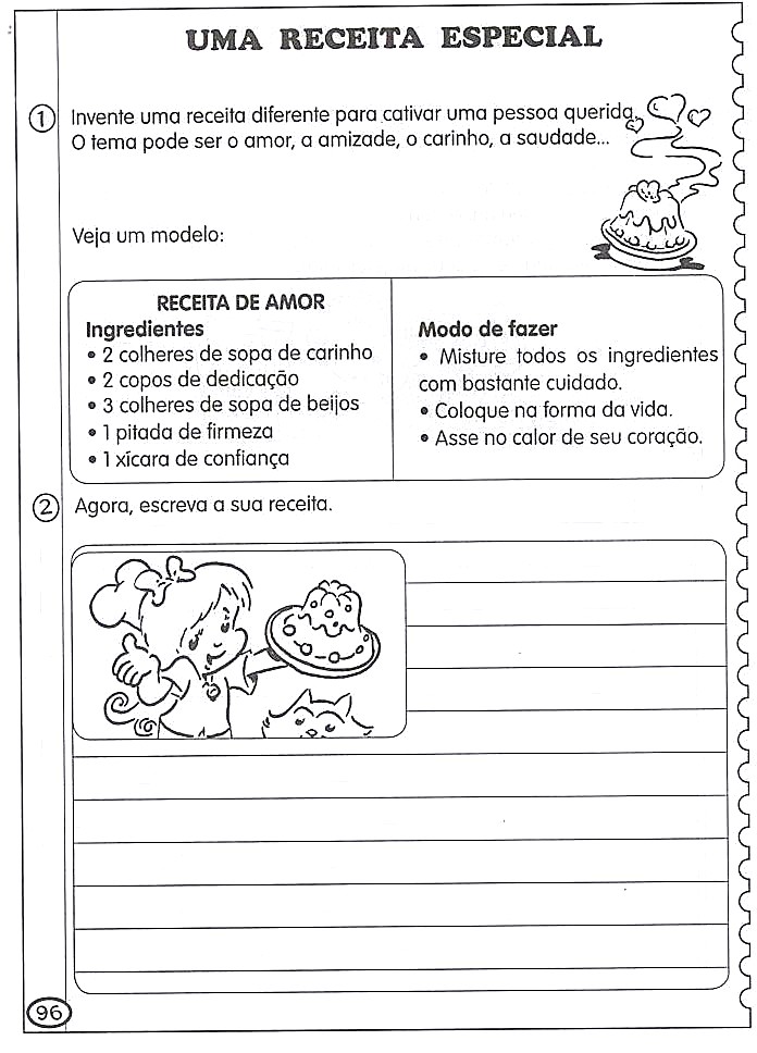 Nesta atividade, a escrita se torna criativa e afetiva! A proposta convida os alunos a criar receitas metafóricas, com ingredientes como carinho, amizade e dedicação.